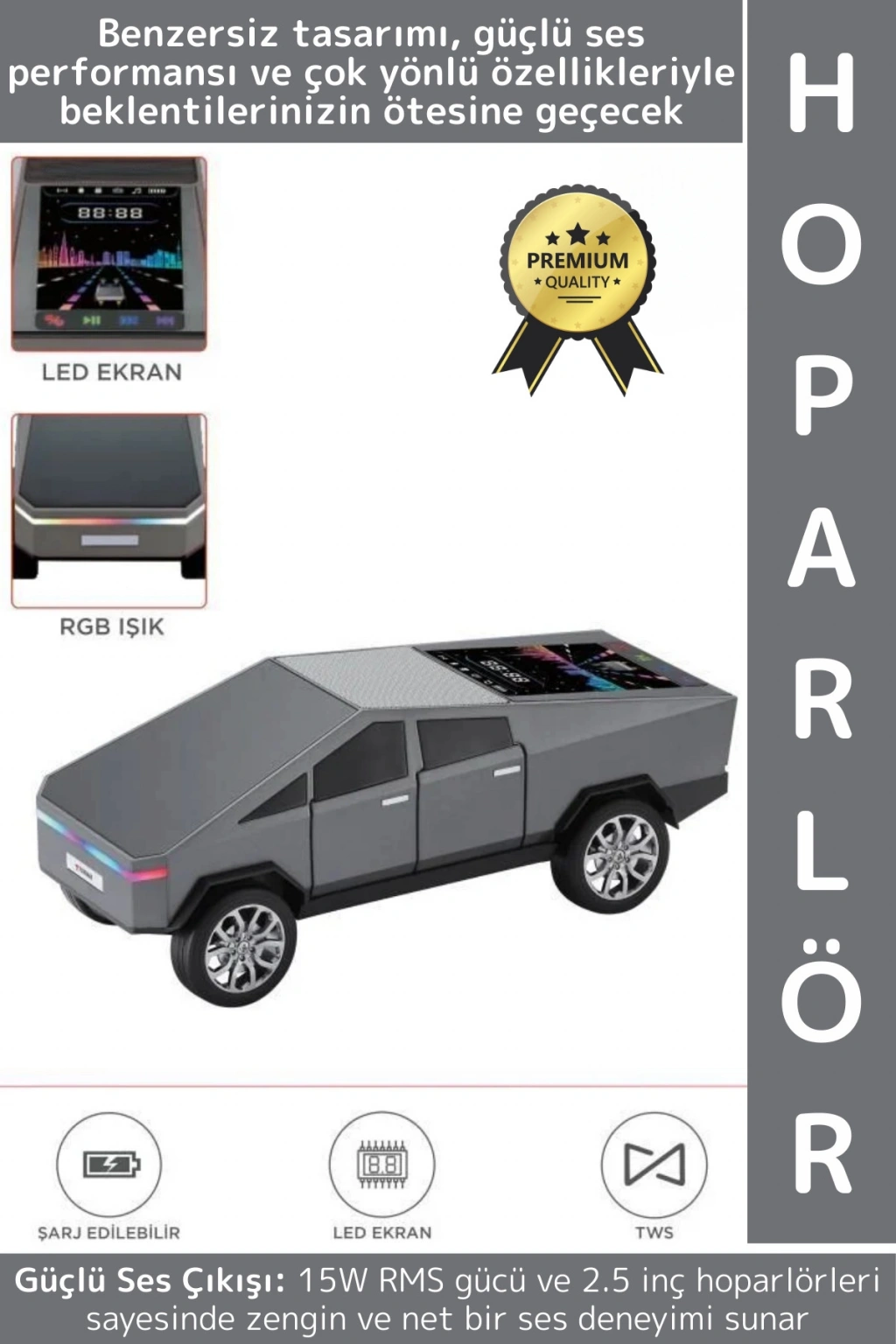 CyberTruck Araba Tasarımlı Bluetooth Hoparlör 15W Güçlü Ses RGB LED /TWS/USB