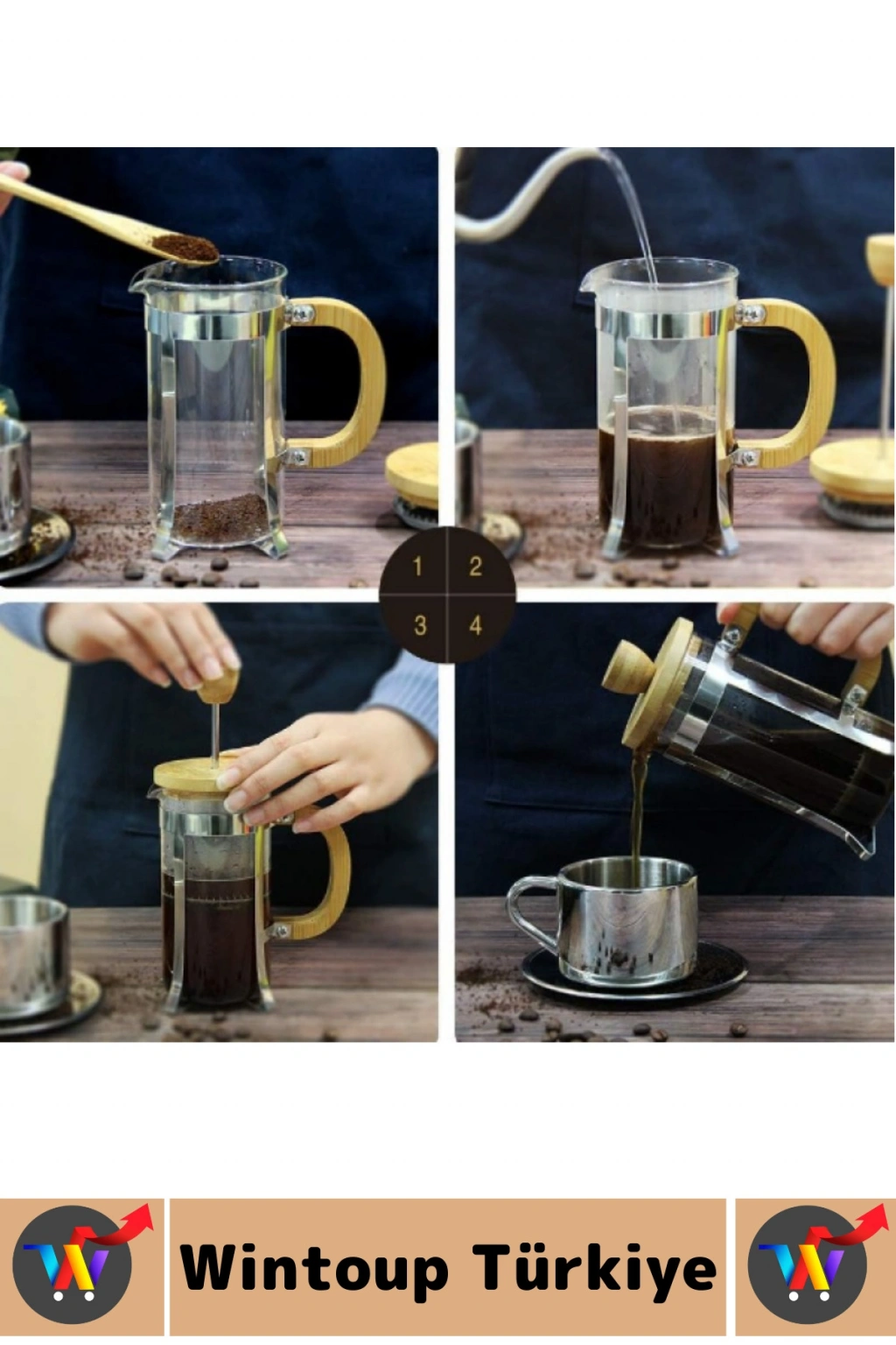 Paslanmaz çelik süzgeç sistemi sayesinde kahvenizin tortusuz, pürüzsüz bir şekilde demlenmesini sağlar. Ahşap kapak ve sap tasarımı ısıya karşı güvenli bir tutuş sunarken, cam haznesi sıcak içeceklerin aromasını korur.