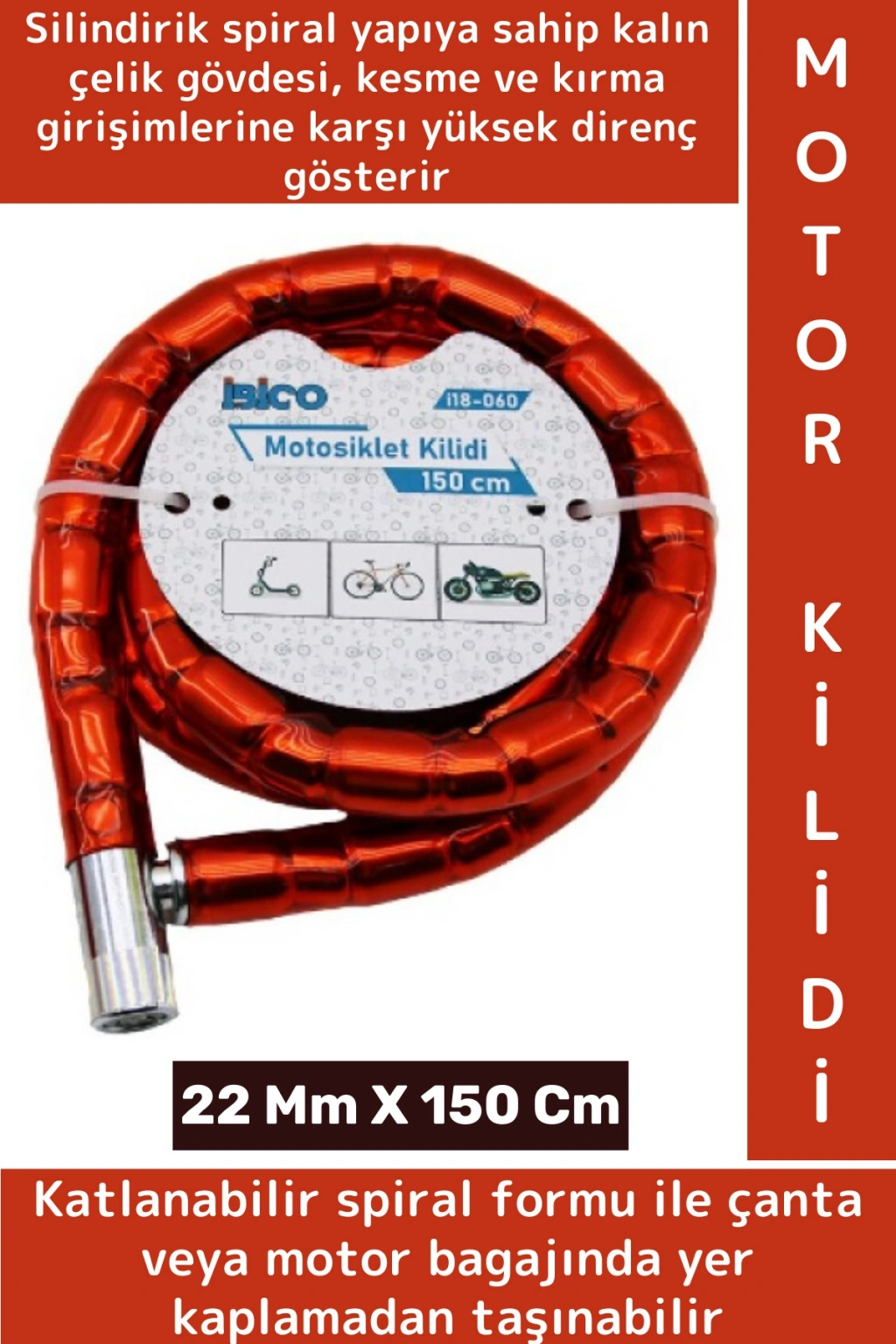1 adet Kırmızı Motor Bisiklet Kilidi 22 mm x 150 cm