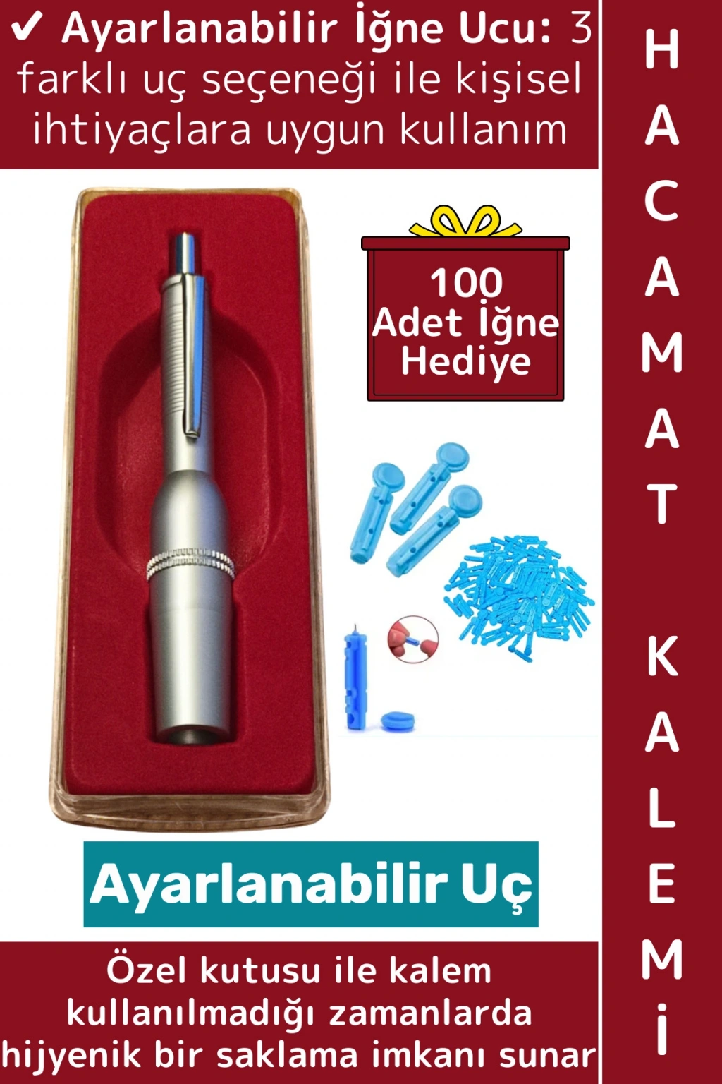 3 Uçlu Metal Ayarlamalı Hacamat Kalemi +100'lü paket iğne – Profesyonel ve Hijyenik