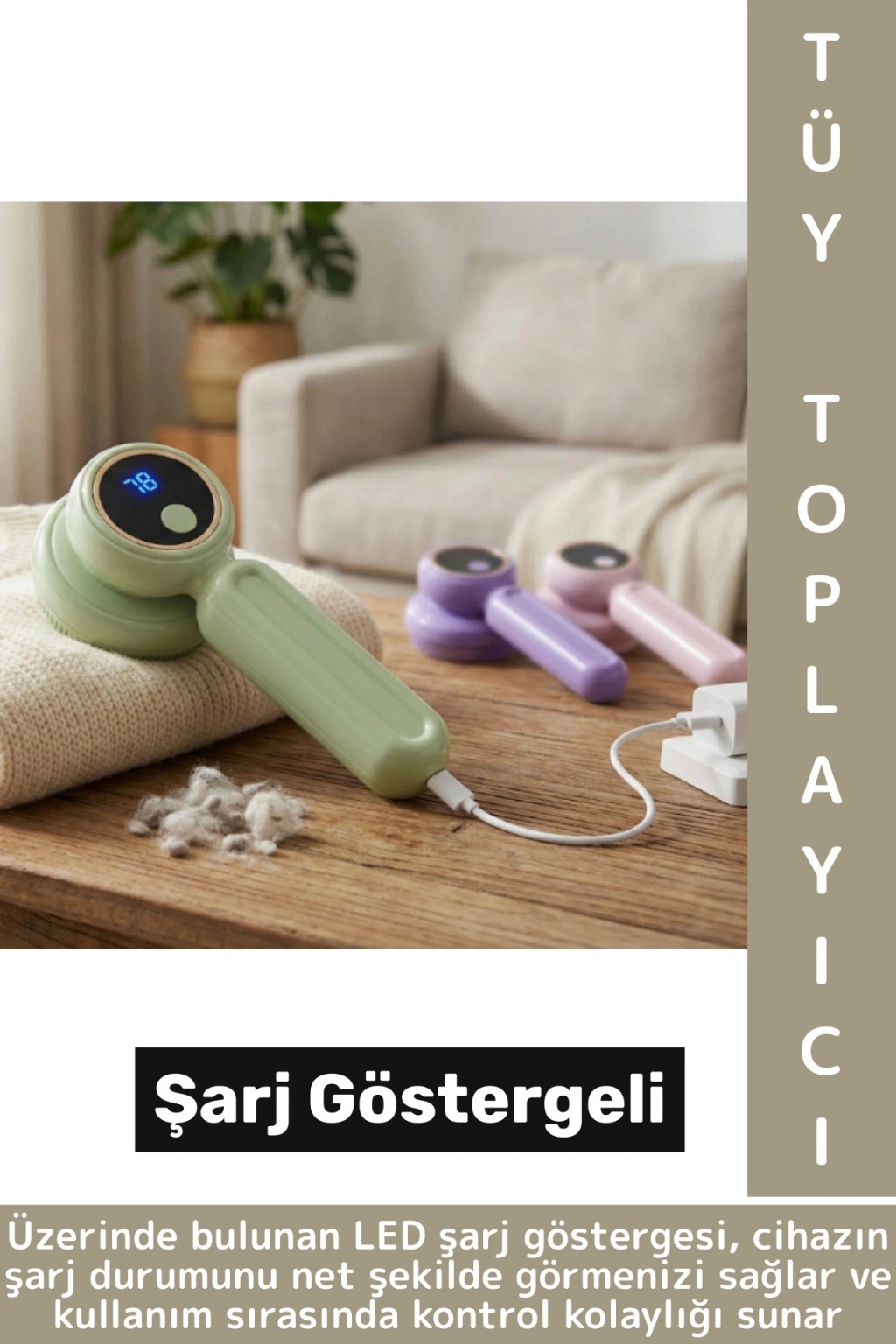 Şarj göstergeli tiftik temizleme aleti, kıyafetlerinizde, koltuklarda, battaniyelerde ve tekstil yüzeylerinde oluşan tiftik, pamuklanma ve iplik artıklarını pratik şekilde temizlemek için tasarlanmıştır.