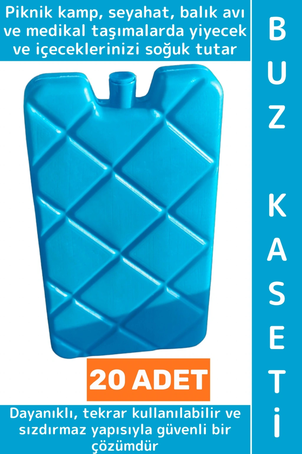 Piknik kamp, seyahat, balık avı ve medikal taşımalarda yiyecek ve içeceklerinizi soğuk tutar. Dayanıklı, tekrar kullanılabilir ve sızdırmaz yapısıyla güvenli bir çözümdür.
