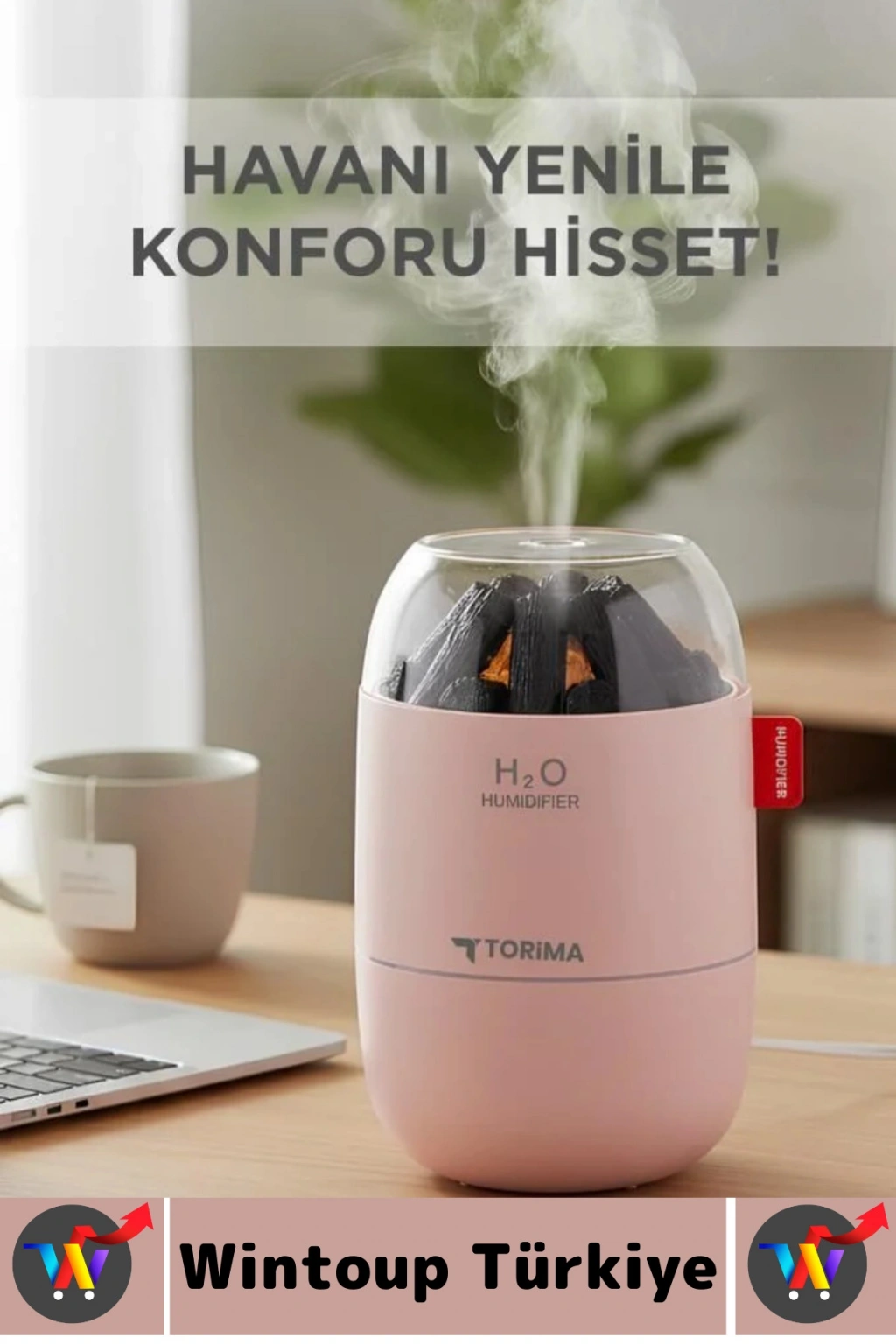 Premium Sessiz Buhar Makinesi Meditasyon Led Işıklı Odun Ateşi Efektli Oda Hava Nemlendirici 280 ML