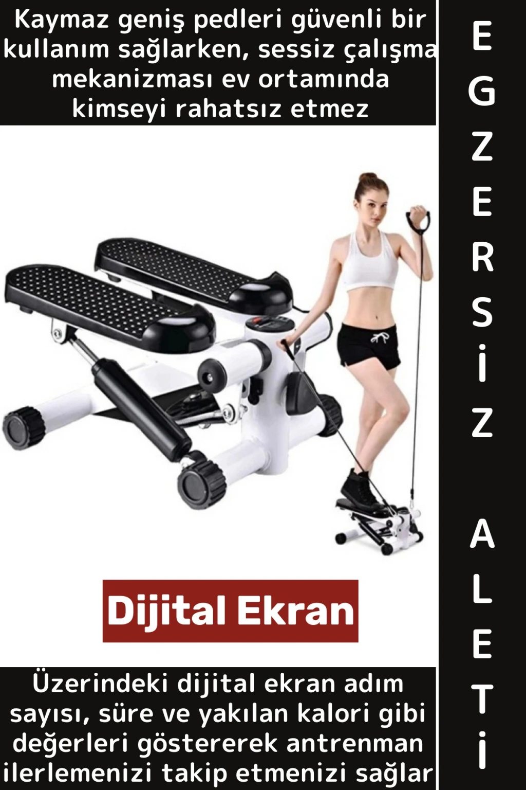 Direnç Lastikli Mini Stepper Egzersiz Aleti, evde pratik ve etkili bir antrenman yapmak isteyen kullanıcılar için tasarlanmış kompakt bir fitness cihazıdır. Step hareketi ile bacak, kalça ve basen bölgesini çalıştırırken, beraberinde gelen direnç lastikleri sayesinde kol, omuz ve sırt kaslarını da devreye alarak tam vücut antrenmanı sağlar. Güçlü hidrolik piston sistemi sayesinde her adımda dengeli ve akıcı bir hareket sunar, böylece yorulmadan uzun süreli egzersiz yapmak mümkün olur.