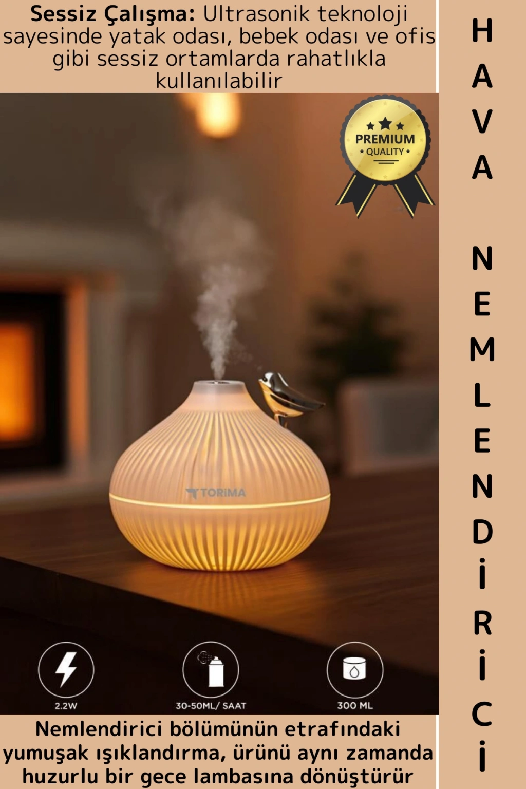 Dekoratif Işık (LED Işık):Nemlendirici bölümünün etrafındaki yumuşak ışıklandırma, ürünü aynı zamanda huzurlu birgece lambasınadönüştürür.