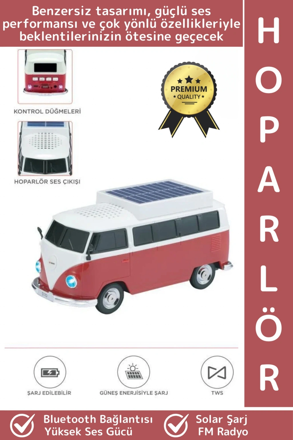 Vosvos Minibüs Tasarımlı Solar Şarjlı Bluetooth Hoparlör 5W Güçlü Ses