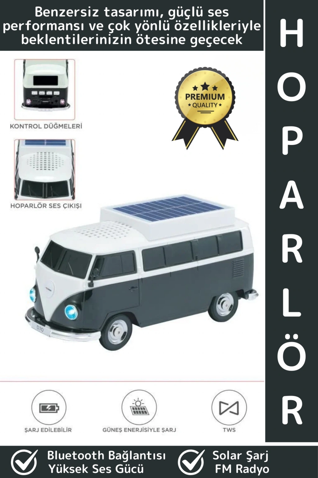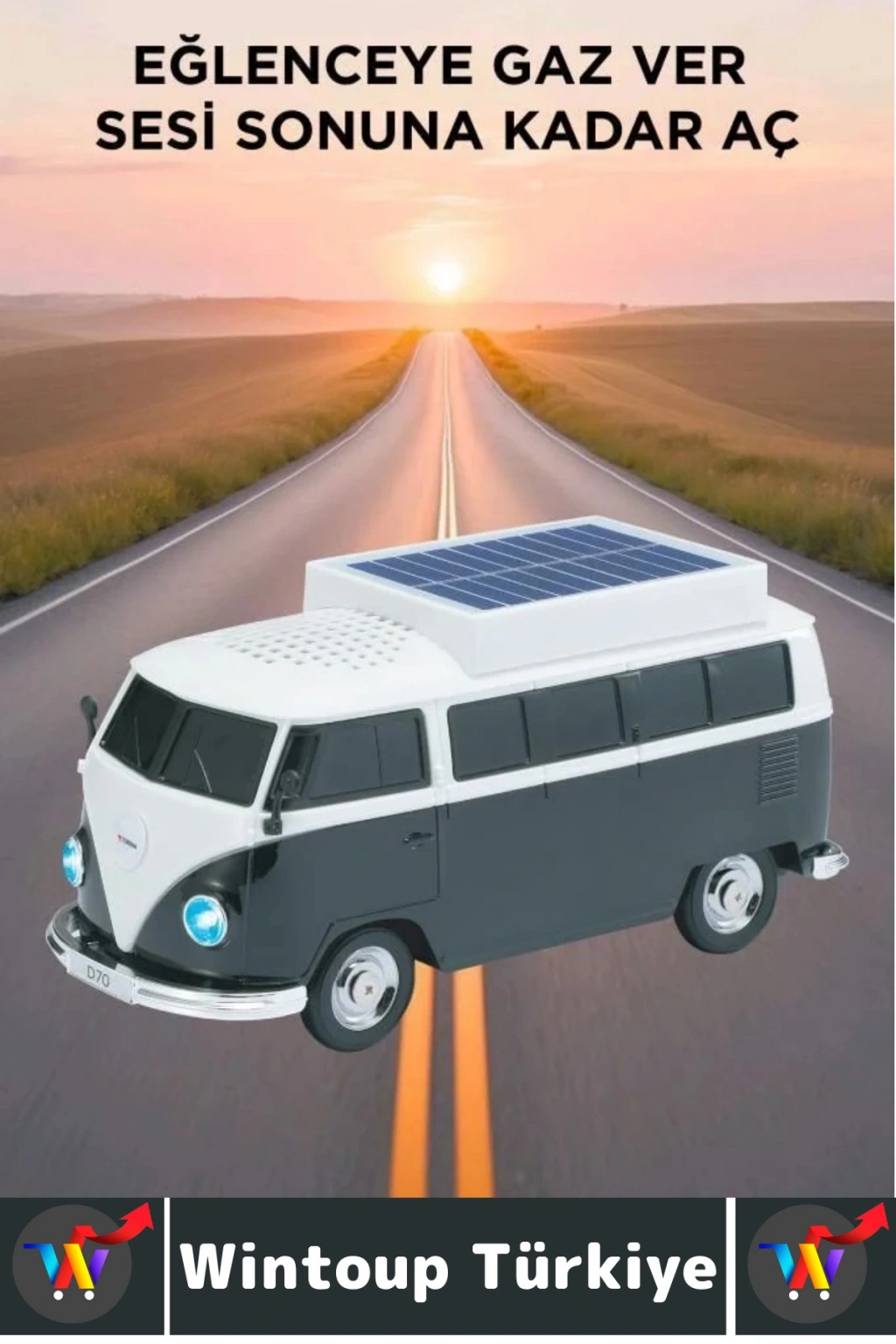 Premium Yüksek Ses Kamp Speaker FM Solar Şarjlı Çok Şık Retro Vosvos Tasarımlı Bluetooth Hoparlör