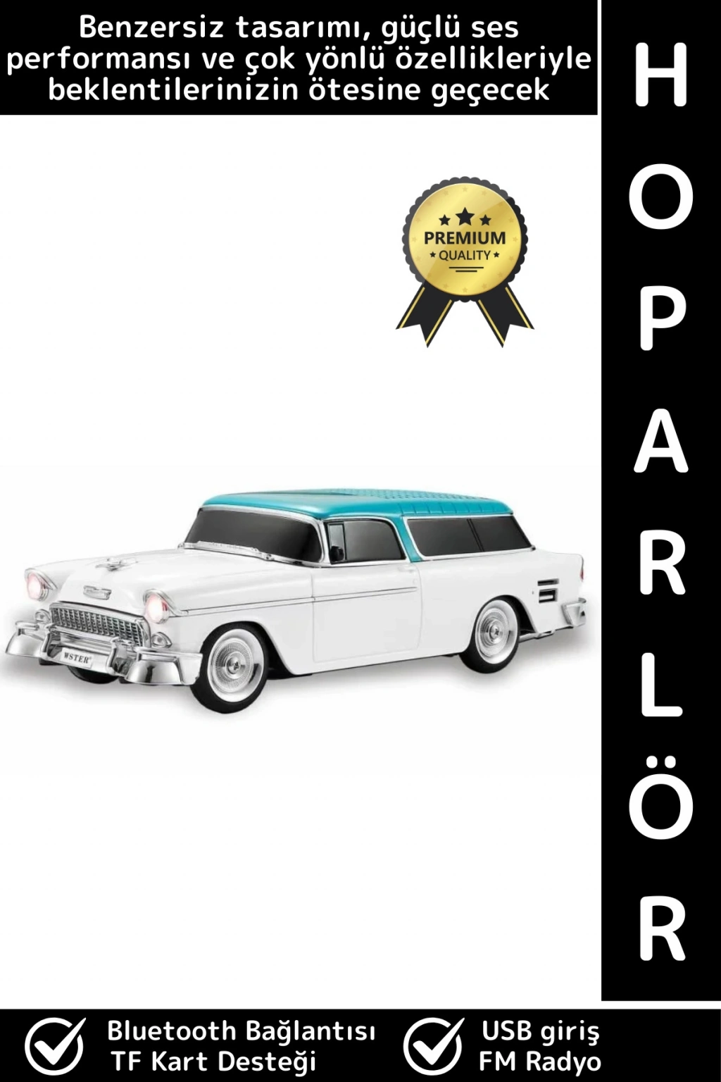 Klasik Araba Bluetooth Hoparlör, retro araba tasarımıyla dikkat çeken bir taşınabilir hoparlördür. USB, TF kart, FM radyo ve Bluetooth 5.0 desteği sunar; toplam çıkış gücü 10W’dır.