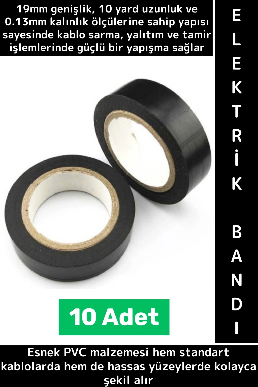 Siyah Elektrik İzole Bant 10’lu Paket, profesyonel elektrik işlerinden evde yapılan küçük onarımlara kadar her alanda yüksek sunmak üzere tasarlanmıştır.