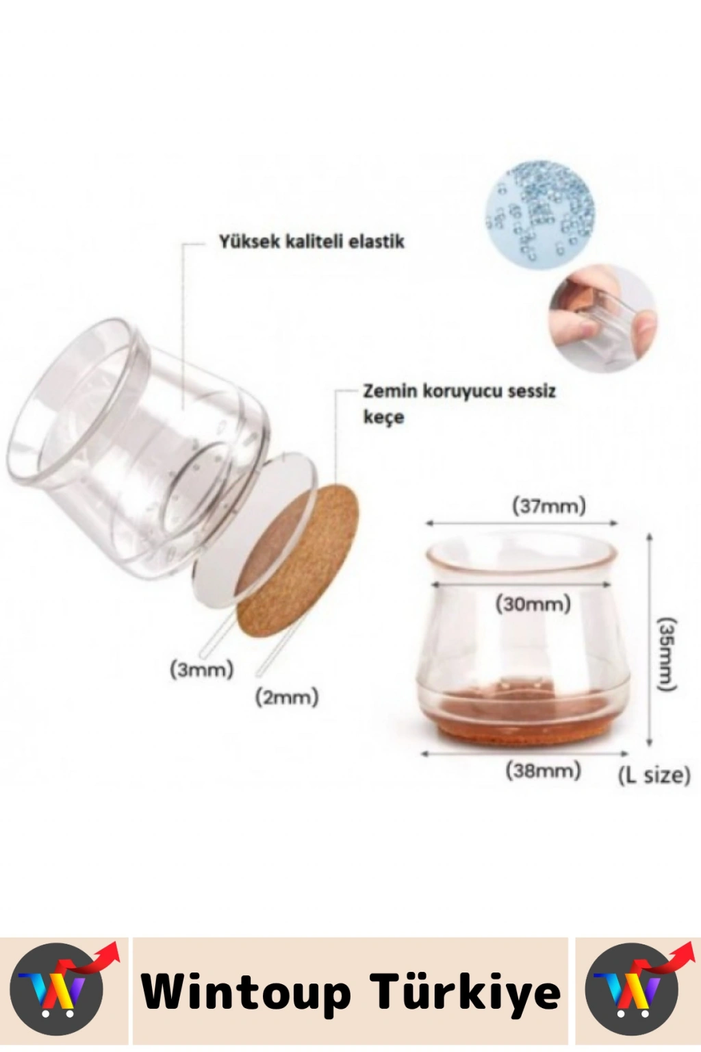 KEÇELİ ŞEFFAF SİLİKON SANDALYE AYAK KORUYUCU SETİ