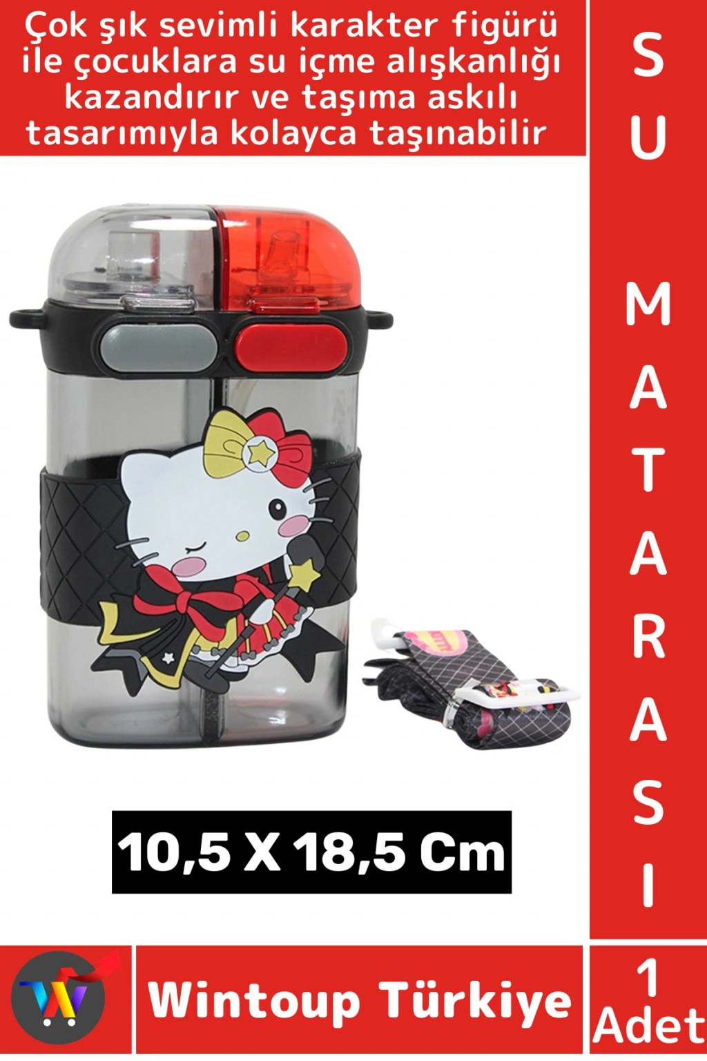 Sevimli Desenli Çift Bölmeli Su Matarası yüksek kaliteli malzemeden üretilmiş olup, sağlıklı ve dayanıklı bir kullanım sunar. Hafif ve ergonomik tasarımıyla taşıması oldukça kolaydır. İçeceğin dökülmesini önleyen sızdırmaz kapak sistemine sahiptir. Spor, okul, ofis veya günlük kullanım için mükemmel bir seçimdir. Sevimli tasarımıyla çocuklara su içme alışkanlığı kazandırır