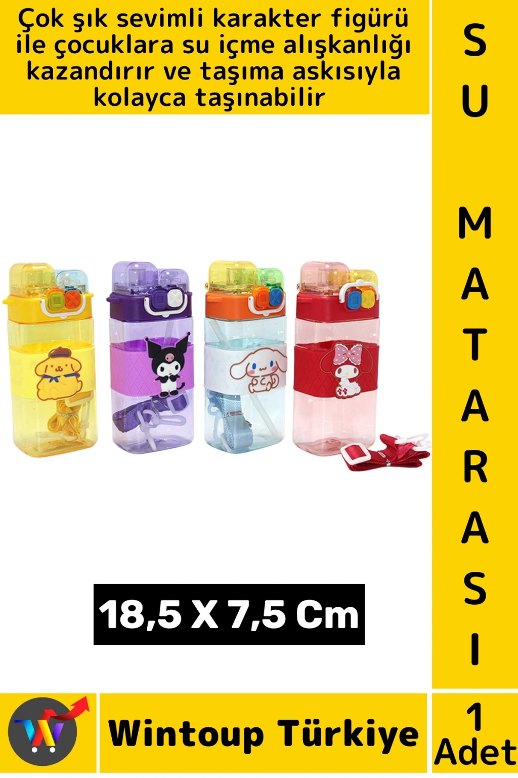 Çok şık sevimli karakter figürlü çift bölmeli ve pipetli Su Matarası 1. derece kaliteli malzemeden üretilmiş olup, sağlıklı ve dayanıklı bir kullanım sunar. Hafif ve ergonomik tasarımıyla taşıması oldukça kolaydır. İçeceğin dökülmesini önleyen sızdırmaz kapak sistemine sahiptir. Spor, okul, ofis veya günlük kullanım için mükemmel bir seçimdir. Sevimli tasarımıyla çocuklara su içme alışkanlığı kazandırır