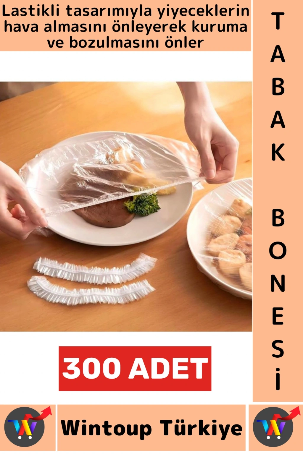 300 adet lastikli tazeliği koruyan tencere ve tabak bonesi, yiyeceklerinizi sağlıklı koşullarda saklamanızı sağlayan pratik bir çözümdür. Bu ürün sayesinde dolabınıza koyduğunuz yiyeceklerin kokuları birbirine karışmaz. Kahvaltılarınızda, yemeklerinizi saklamak için ve daha birçok alanda kullanabilirsiniz.