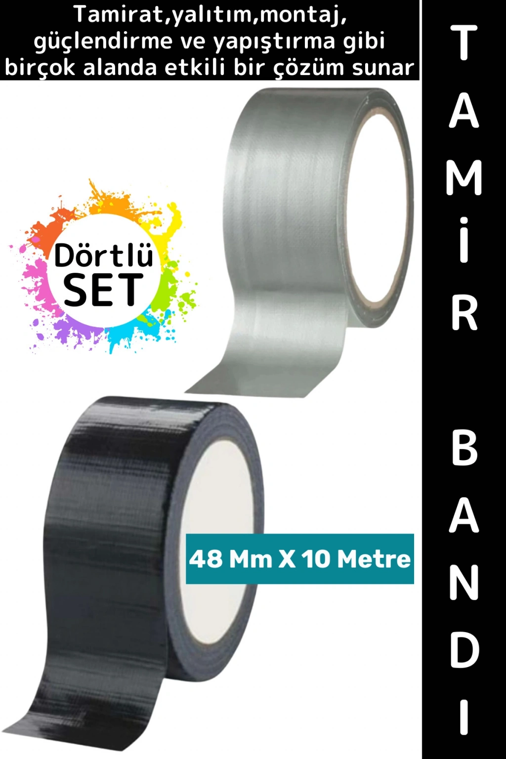 Paket İçeriği: 2 Adet Siyah ve 2 Adet Gri 48 Mm X 10 Metre