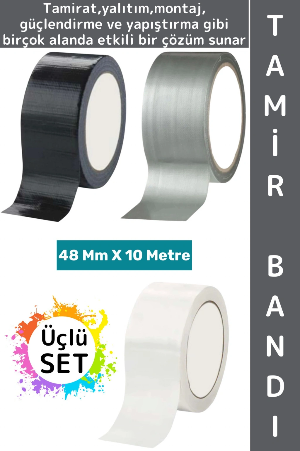 Paket İçeriği: 1 Adet Siyah,1 Adet Beyaz ve 1 Adet Gri 48 Mm X 10 Metre