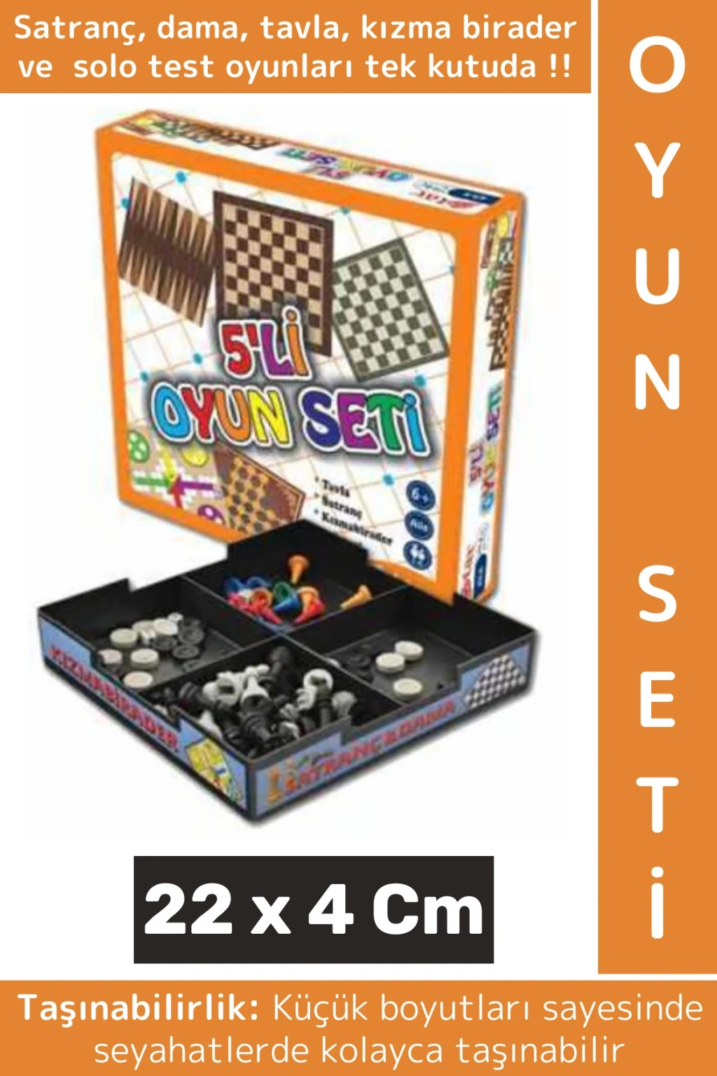 5’li Oyun Seti, tek kutuda birden fazla klasik oyunu bir araya getiriyor. İçeriğinde satranç, dama, tavla, kızma birader ve solo test oyunları bulunuyor.