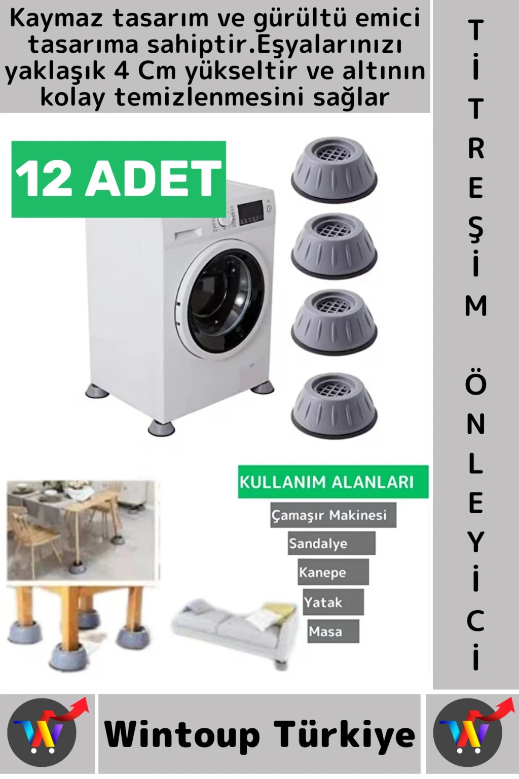 #TitreşimÖnleyici Kaydırmaz Ses Titreşim Önleyici Çamaşır Makinesi Mobilya Sabitleyici Ayak 12 Adet