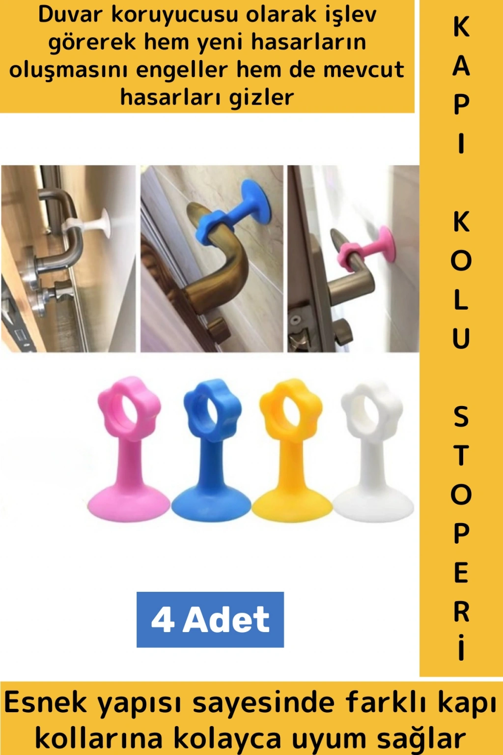 4 adet Vantuzlu Geçmeli Kapı Kolu Stoperi