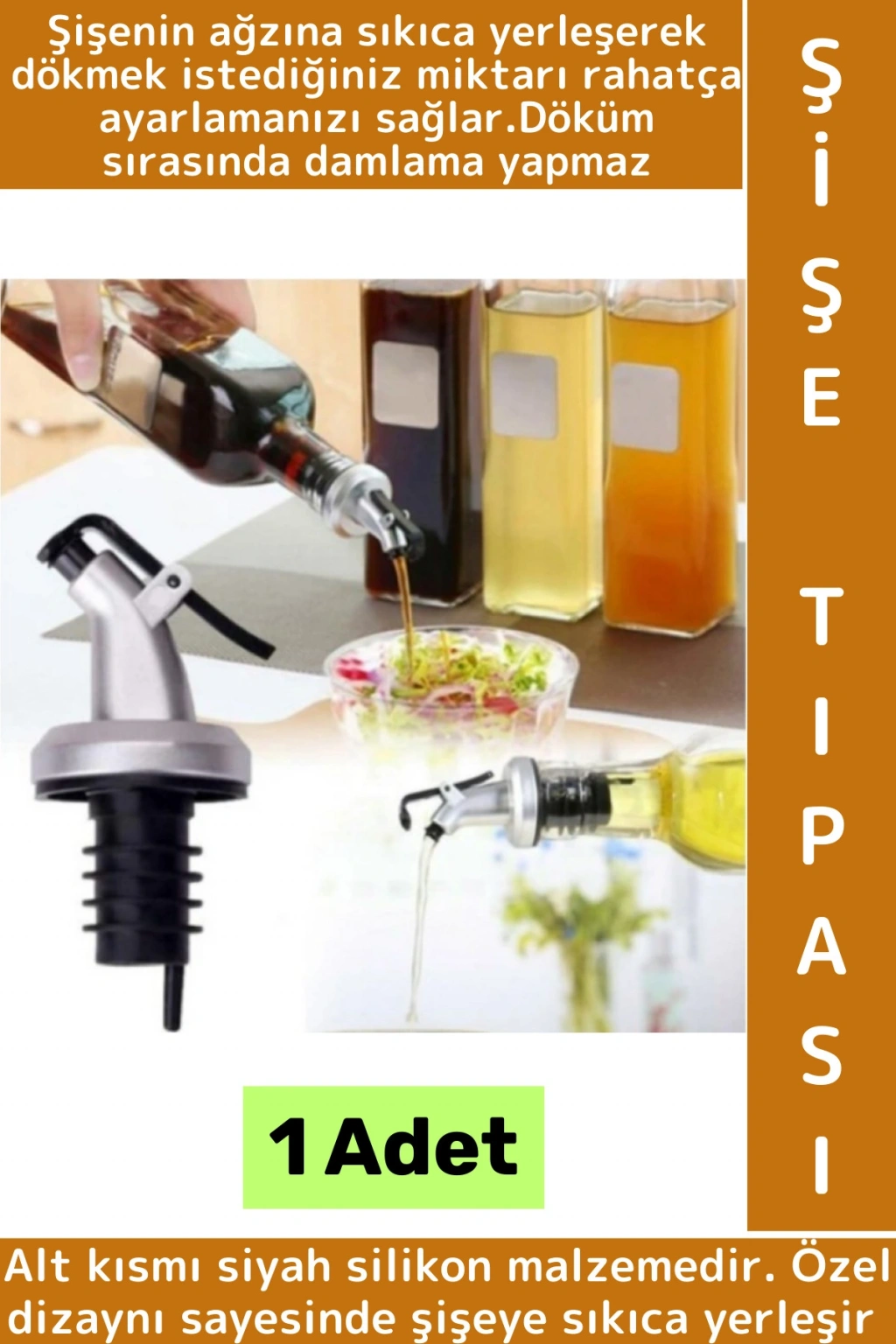 Sızdırmaz Kapaklı Şişe Tıpası Yağdanlık Ucu