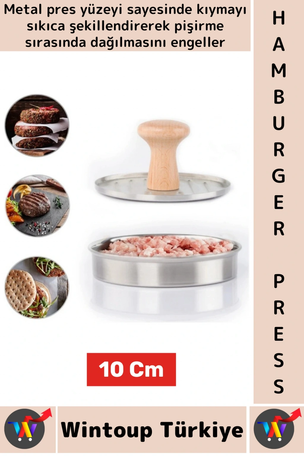 Metal pres yüzeyi sayesinde kıymayı sıkıca şekillendirerek pişirme sırasında dağılmasını engeller. Ahşap sapı ergonomik yapısıyla rahat bir tutuş sağlar ve uzun süreli kullanımda konfor sunar. Izgara çizgili yüzeyi köftenin her iki tarafında da düzgün bir form oluştururken, daha iştah açıcı bir görünüm elde etmenize yardımcı olur. Ev yapımı köfteleri profesyonel bir sunuma dönüştürmek isteyen herkes için ideal bir üründür.