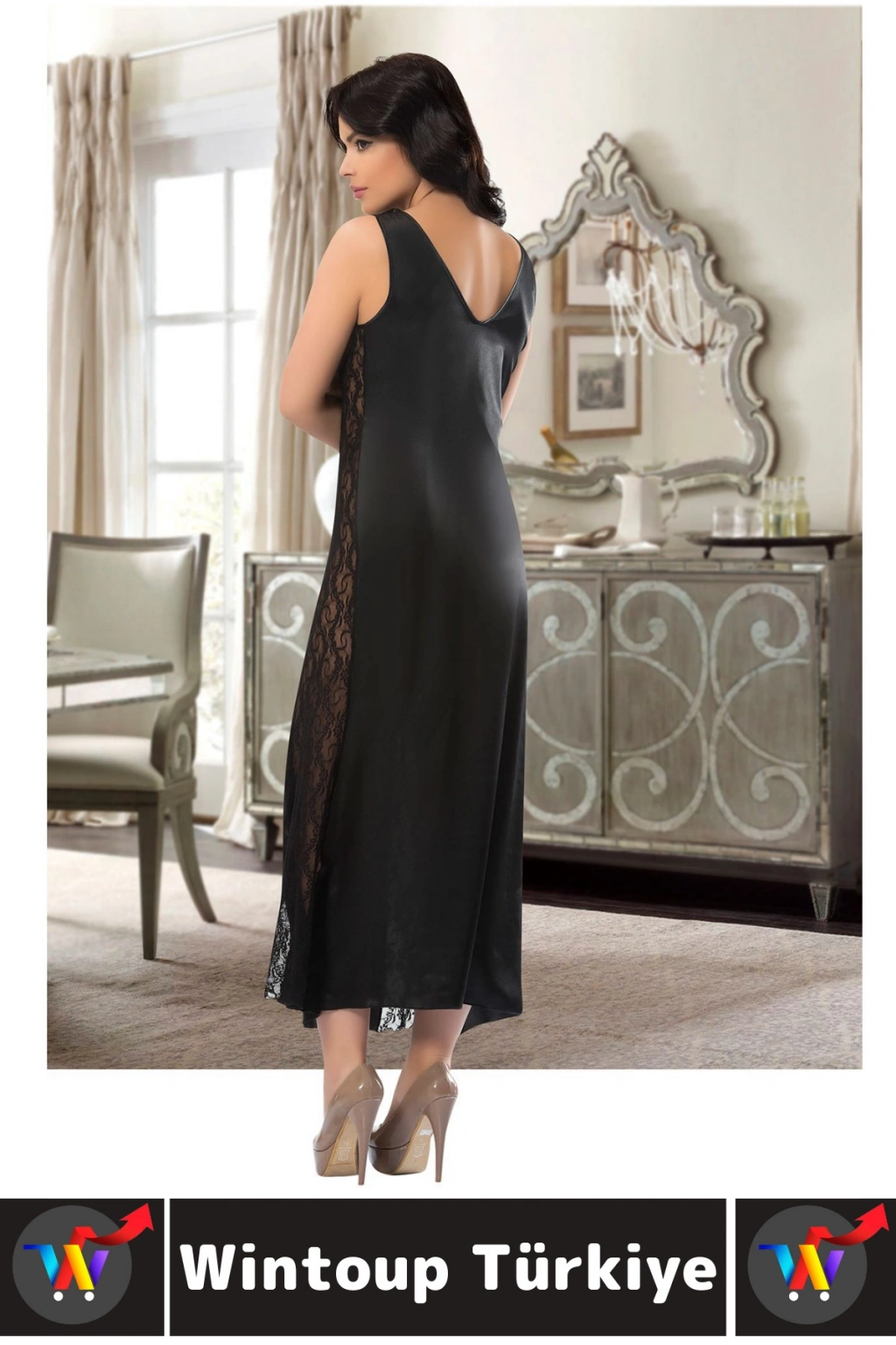 Desenli Dantelli saten gecelik üstün kalitede üretilmiştir.