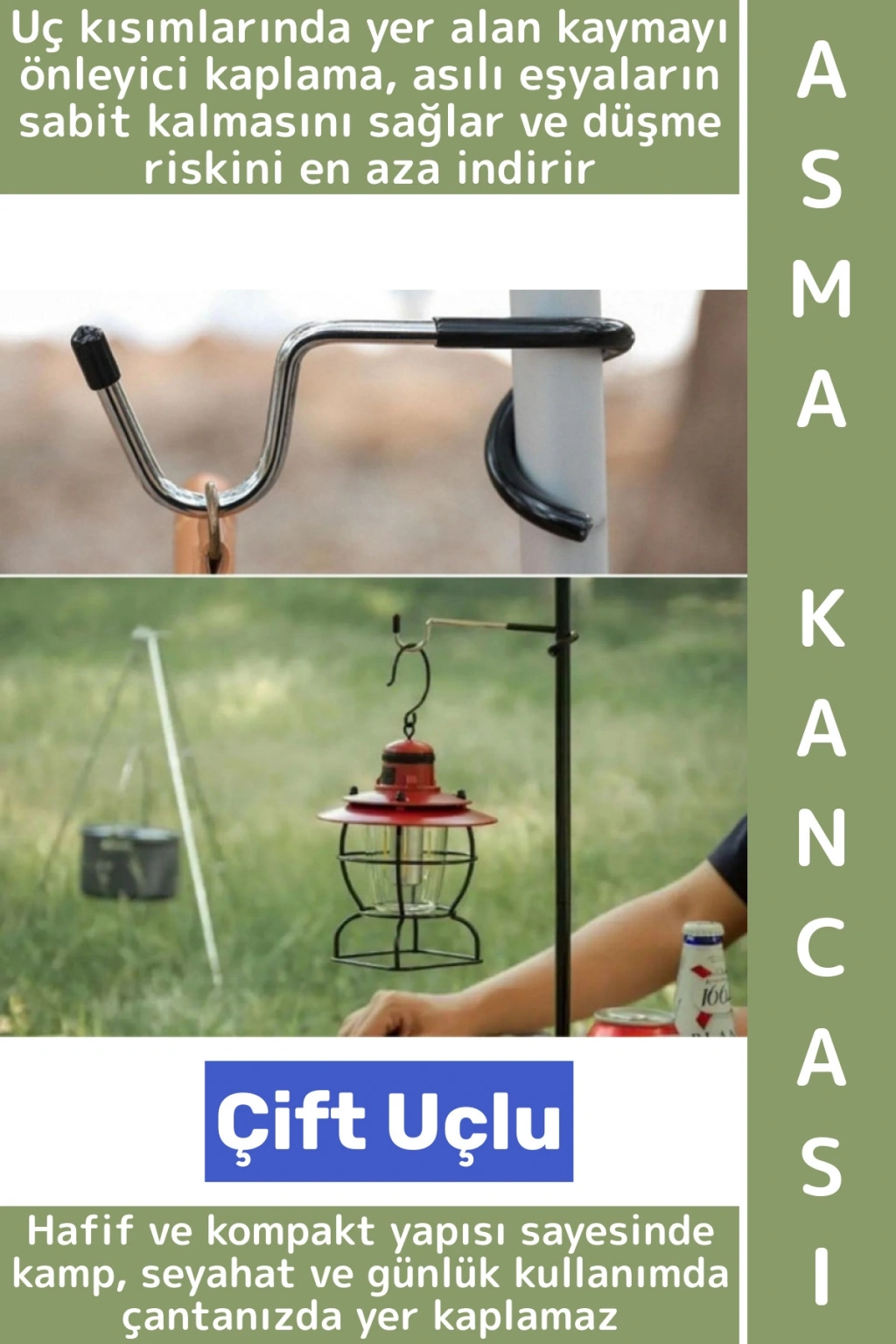 Kamp alanlarında çadır içi düzenlemeden mutfakta tava, havlu ve mutfak gereçlerinin asılmasına, sırt çantası ve ekipman taşımadan ev içi düzenlemeye kadar pek çok alanda pratik ve estetik bir çözüm sunar. Minimal tasarımı ile her ortamda düzenli ve şık bir görünüm elde etmenize yardımcı olur.